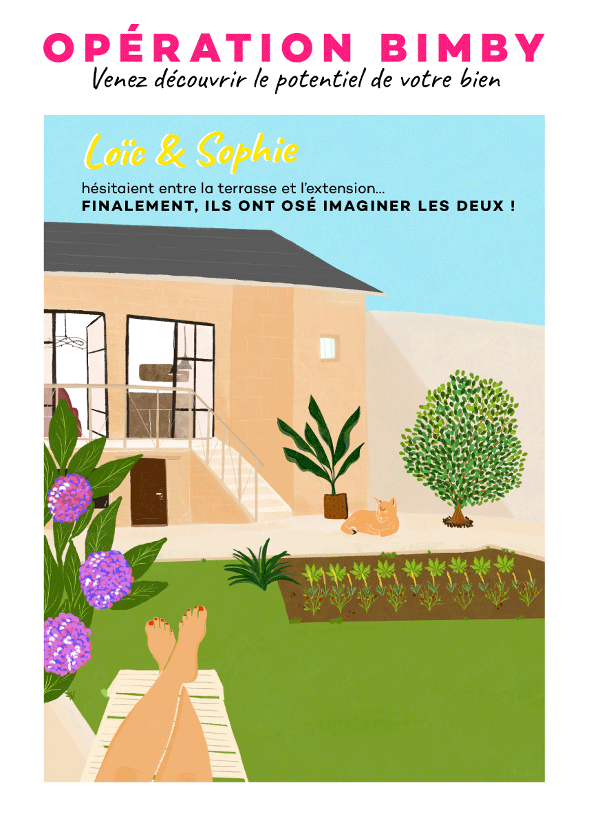 Ses copains le disent « Yann a toujours un coup d’avance ». Lorsqu’il hérite de cette maison à étage, en centre-bourg, il imagine avec les équipes Bimby de construire sur le terrain une maison de plain-pied pour sa retraite. Il a pensé à tout: une terrasse pour profiter du soleil et une balançoire pour les petits enfants. Enfin, quand ils seront nés ! En attendant, il va louer ce beau plain-pied.
